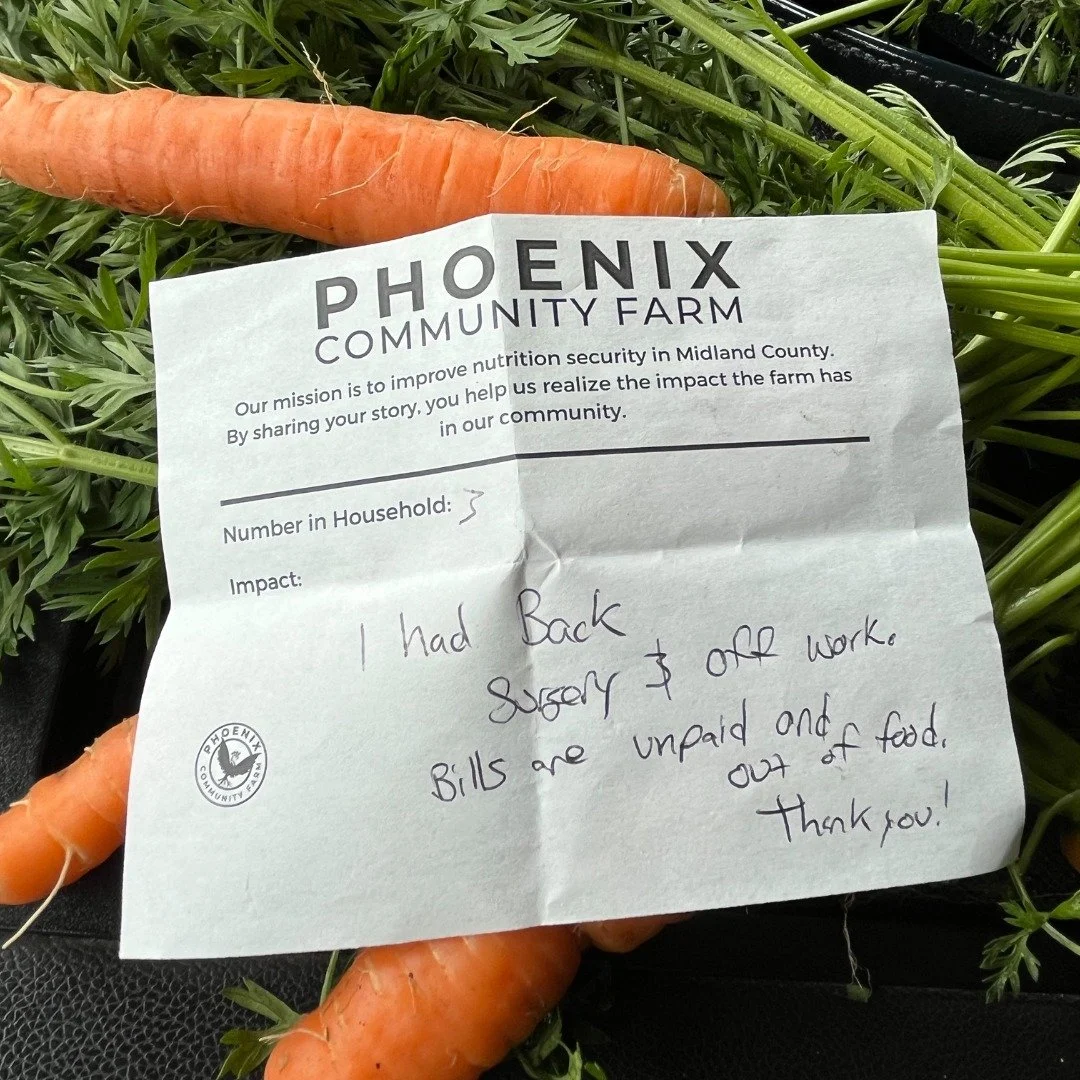 A touching comment card left on the Phoenix Community Farm “Pay What You Can” Stand.