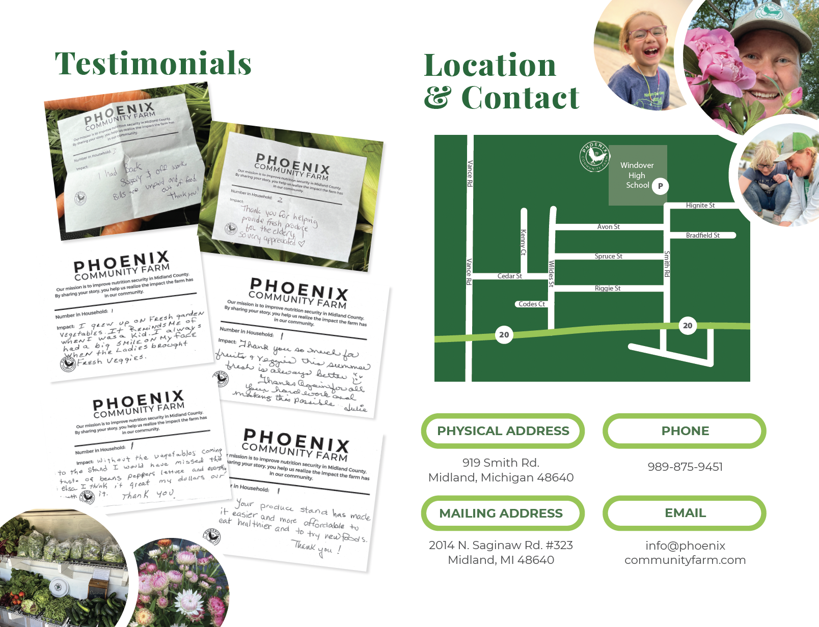 B: We are so grateful for many supportive donors, volunteers, and customers. Visit our website phoenixcommunityfarm.com to donate and to find lots of information about our current programs. Sign up for our Newsletter on our website to get detailed updates.