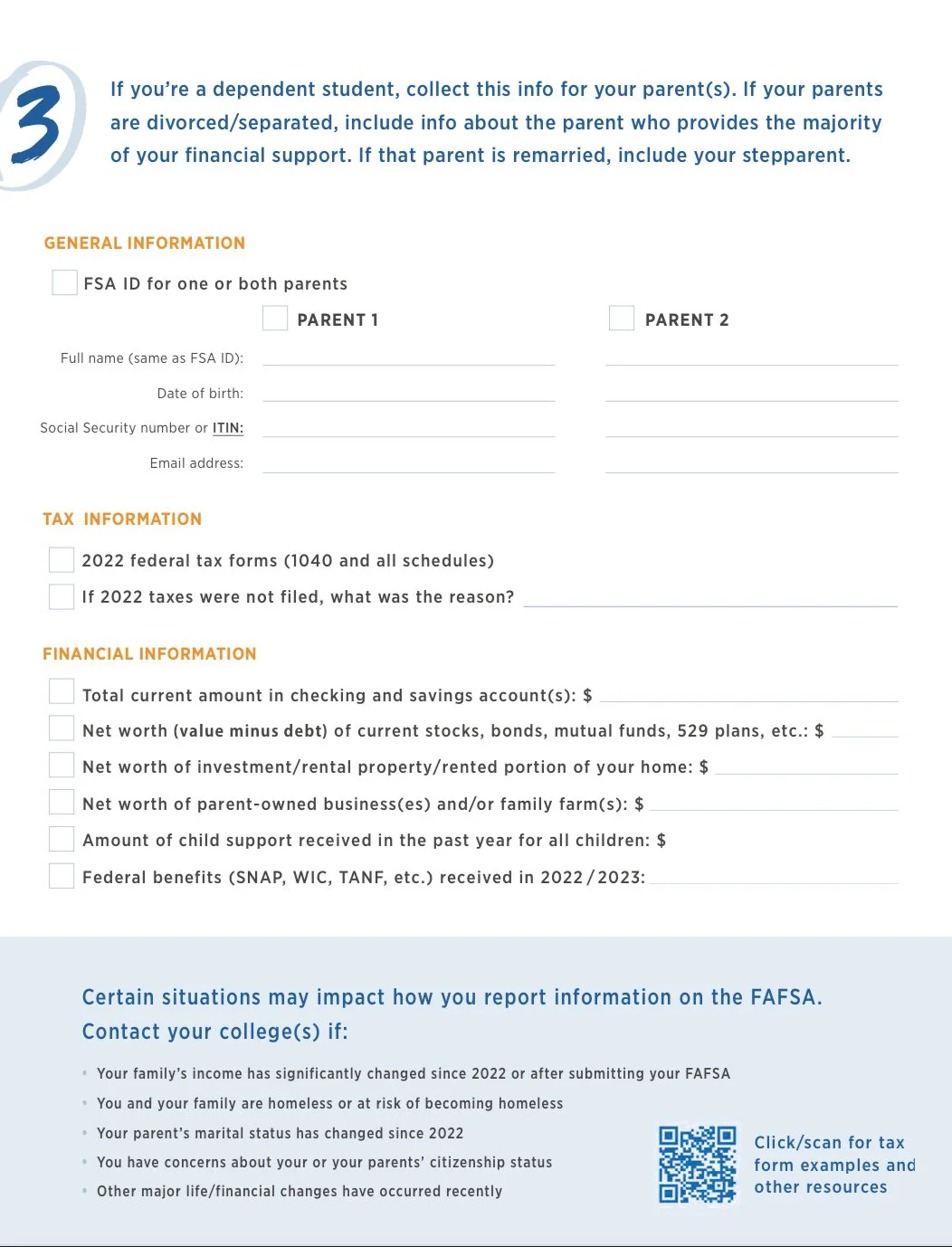 M: Before our Midland folks attend these workshops, your flyer mentions a QR code to access a checklist of information needed to complete the FAFSA application on site. I’ll include that here: