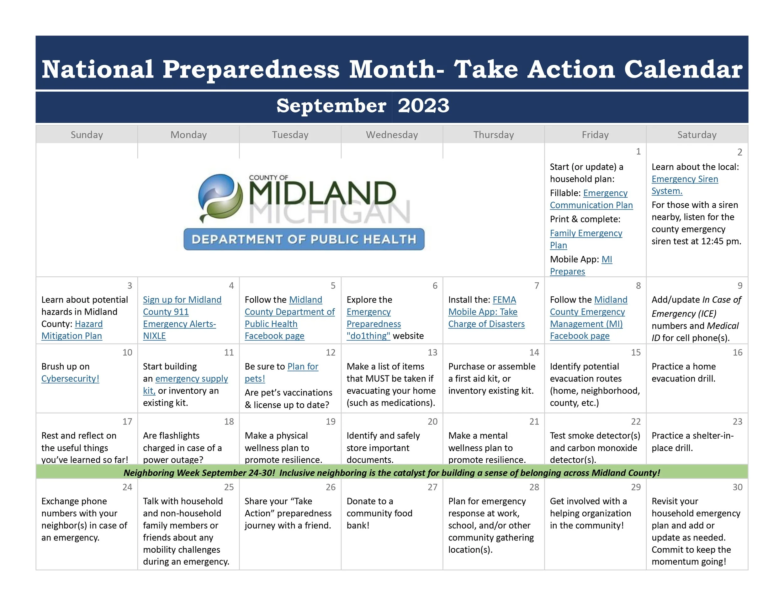 Midland County Department of Public Health Recognizes September as National Preparedness Month