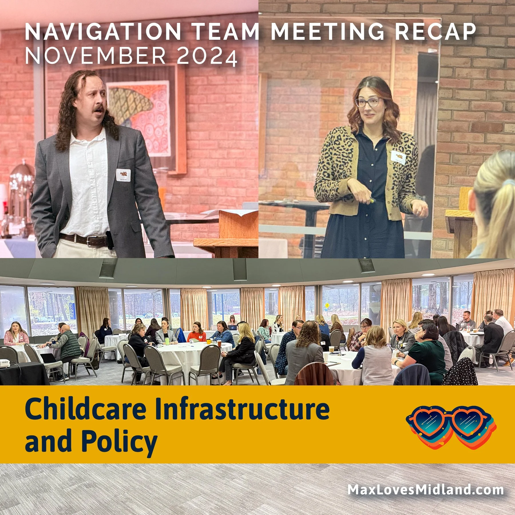 On Friday, November 15, the Max Loves Midland Navigation Team met to tackle a critical topic affecting families, businesses, and the community: childcare infrastructure and policy. Local and regional experts gathered to share insights into the challenges and opportunities within this space, sparking discussions and collaborative problem-solving among attendees.
