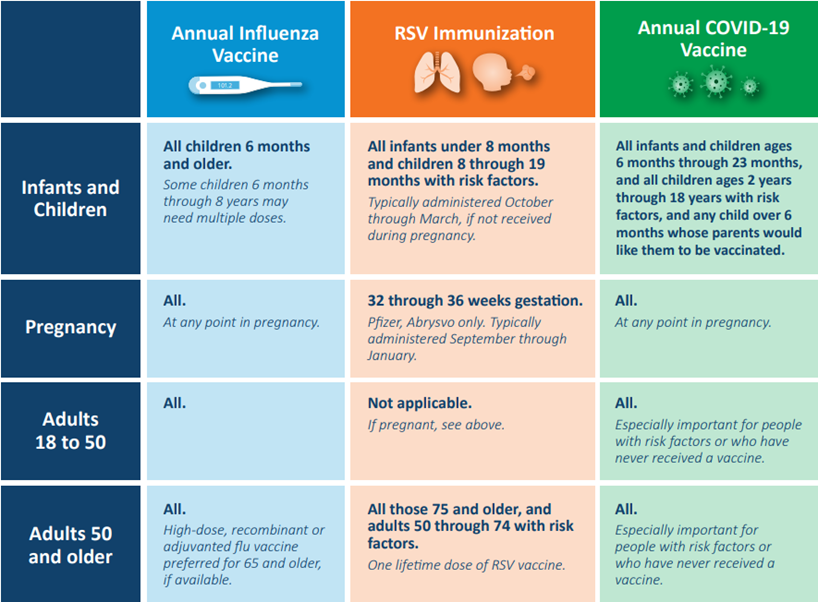 MDHHS has also summarized the 2025-2026 Respiratory Vaccine Recommendations: